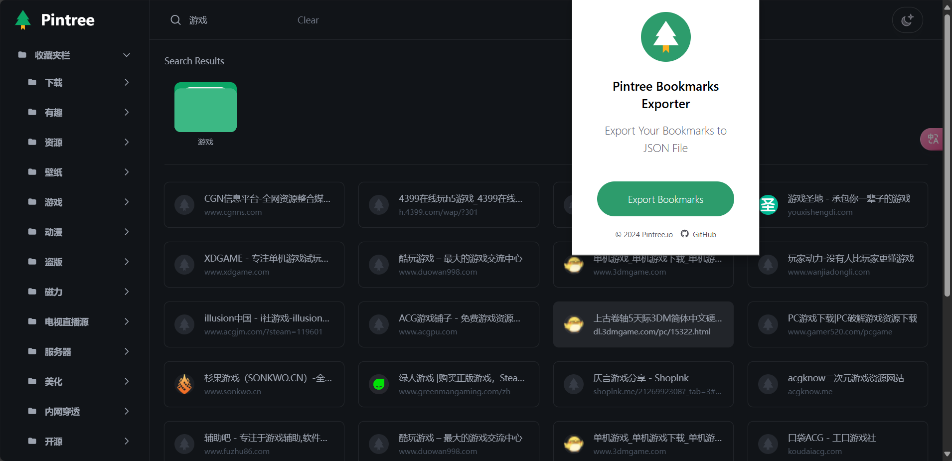 Pintree 是一个开源项目,旨在将浏览器书签导出成导航网站。通过简单的几步操作,就可以将书签转换成一个美观且易用的导航页面。