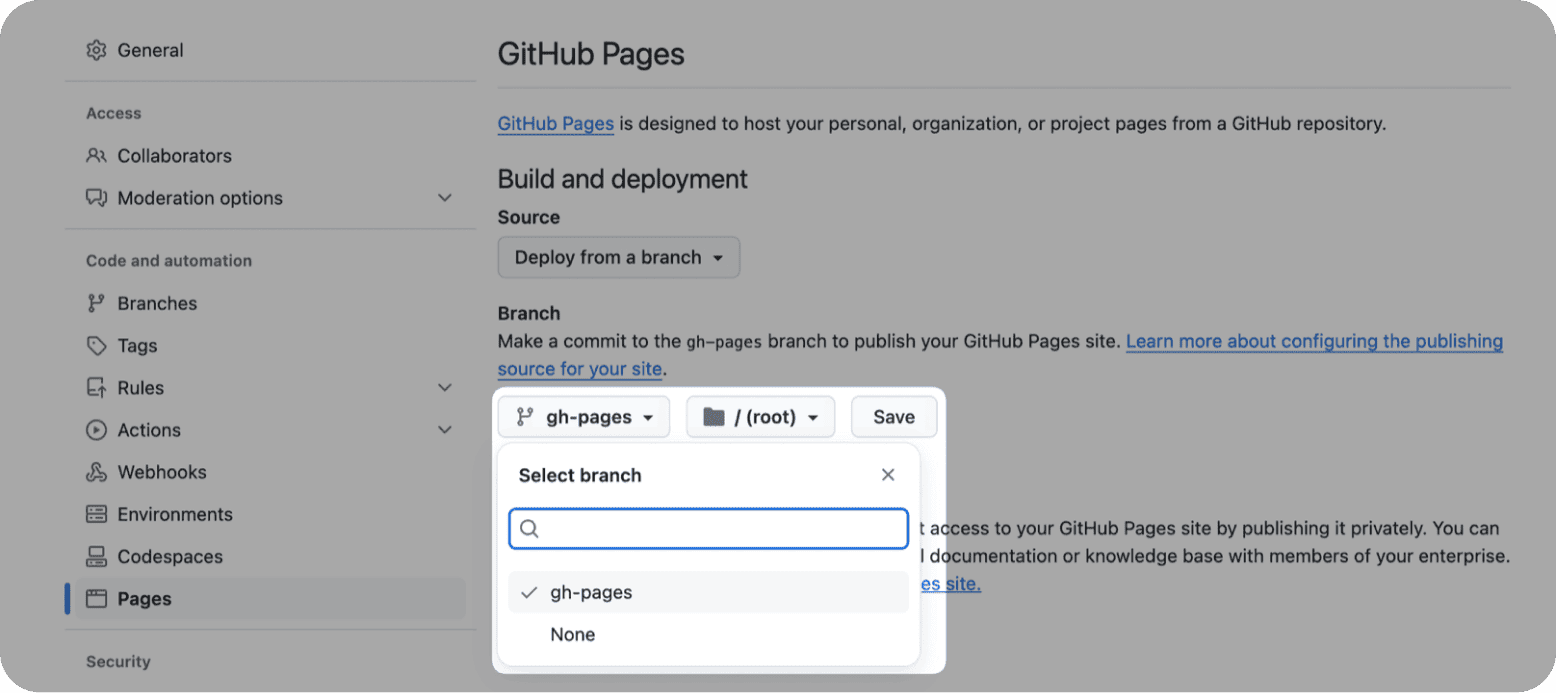 Source下拉菜单中,选择gh-pages分支,然后点击Save。 - 几分钟后,您的静态网站将会在